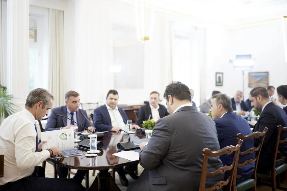 Στη σύσκεψη έλαβαν επίσης μέρος, από πλευράς κυβέρνησης, ο Υπουργός Εσωτερικών Θοδωρής Λιβάνιος, ο Υπουργός Περιβάλλοντος και Ενέργειας Σταύρος Παπασταύρου, ο Υπουργός Κλιματικής Κρίσης και Πολιτικής Προστασίας Γιάννης Κεφαλογιάννης και ο Υφυπουργός παρά τω Πρωθυπουργώ Θανάσης Κοντογεώργης.